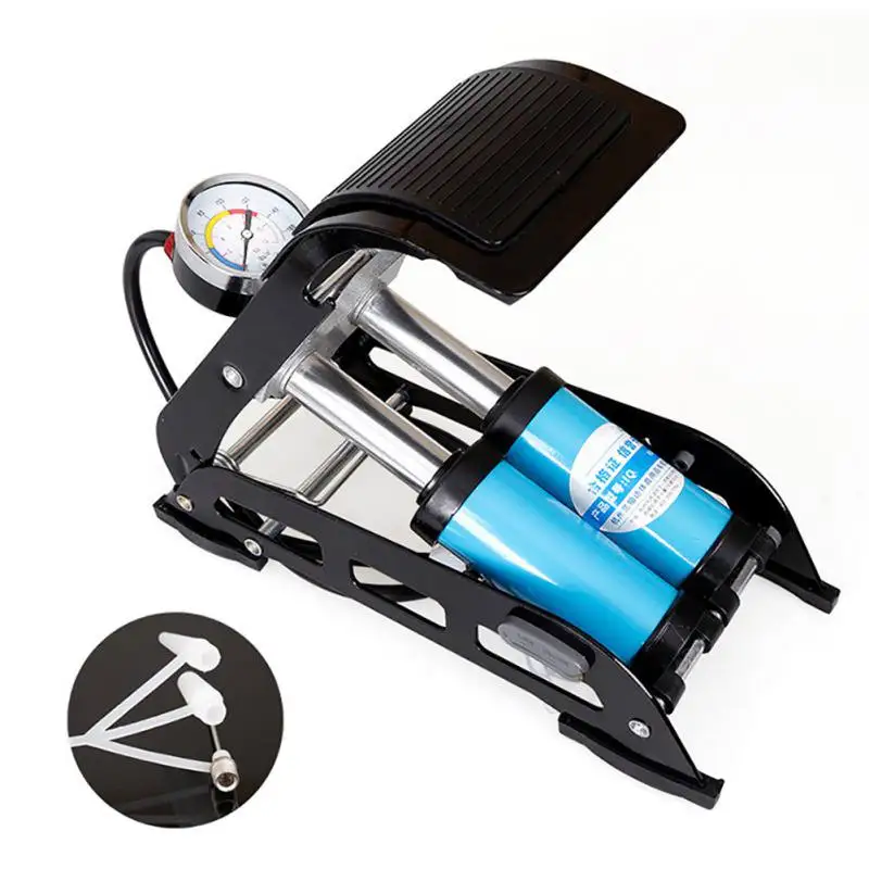 Portable High Pressure Tire Air Inflatable Pump Foot Inflator With Gauge For Car Vehicle Motorcycle Bike